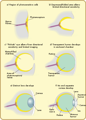 O desenvolvimento do olho é um bom exemplo de como isso ocorreu. Olhos primitivos ainda existem, hoje, em vermes, que detectam apenas variações de intensidade de luz e se orientam de acordo com estas variações. Ora, se, por um acaso, uma mutação faz com que indivíduos que detectam apenas intensidade de luz passem a detectar movimento, ou uma gradação de cores, terão adquirido uma ligeira vantagem adaptativa sobre aqueles indivíduos que não têm esta capacidade. Assim, 1% de visão é melhor que a cegueira total, e 6% é melhor do que 5%, e 10% é melhor do que 6%. O desenvolvimento do olho, de maneira gradual, não somente é perfeitamente plausível como foi verificada pela análise filogenética molecular. Os genes que codificam para a formação e o funcionamento dos olhos de humanos, polvos, sapos, insetos e crustáceos são essencialmente os mesmos, tendo surgido há aproximadamente 600 milhões de anos (Carl Zimmer, Evolution, Harper Collins Publishers, New York, 2008, p. 128).